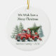 Lägg till lite humor och charm till dina semesterhälsningar med den här prydnaden "Vi önskar Ewe a God jul". Denna prydnad är perfekt för alla som kärlek slår och formar. Det är en festlig scen med vackra får som är klädda för helgdagarna, som åker i en vintage röd lastbil med en Julgran i två. Anpassa den med din familj namn och året om du vill skapa en personlig beröring som kommer att glädja vänner och familj. Det finns utrymme på baksidan om du vill inkludera ett foto av din familj eller nära och kära. Den lekande designen blandar rustik inslag med en lätt helgdag, skapar det som en idealisk dekoration för får älskare, jordbrukare och alla som har en bra djurpun. Skicka e-post till mig för eventuella designfrågor eller redigeringsfrågor på pawsnclawspaperie@gmail.com.