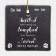 Ät din bästa vän med en minnesprydnad i personligen. Denna unika minnesprydnad är perfektens gåva till dig själv, familj eller vänner för att betala hyllning till din kära. Vi hoppas att ert minnesmärke kommer att ge er fred, glädje och lycklig minnen. Citat: "Du log med ögon, skrattade med svan och älskade med hela ditt hjärta." Anpassa till namn och data. Ornament är dubbla, båda sidor är identiska. COPYRIGHT © 2020 Judy Burrows, Black Hund Art - Med alla Höger reserverade