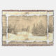 En söt, vintage, vinterplats för gravar i snö på åldrasens parkeringsplats papper. Utfärdad i brunt, guld och vitt.
