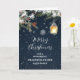 God jul för dotterdotter och hennes familjekort med rustik vintergrön, vintage lantern och snöflingor mönster på en flotta blå himmel.