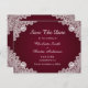 Elegant och romantiska bröllop spara datum-burgundkort för rustik burgundi med vit blommigt snöre på en burgundisk övertoningsbakgrund. Matchande objekt är tillgängliga.