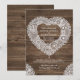 Rustic snöre hjärta på inbjudningar till träbröllo