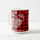 Ett sött kaffe mugg av vita snowskor, snöflingor och ord- "Snowshoe Trail" på en röd buffelbaksida. Perfekten mugg för ditt regummeringsläger eller stuga!