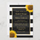 Rustic Solros Black and White Stripe Bröllop Inbjudningar