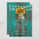 Rustic Solros Blommigt Burk Teal Barn Wood Bröllop Inbjudningar