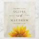 Tillsätt en rustik och glad beröring till firande i bröllop med denna personlig solrosetikett vin flaska. Med en fet solrosillustration med elegantens text är det perfekten för fallbröllop, vinodlingar, rustik land party och årsdag firande. Den här vin-etiketten kan anpassas med namn, datum och plats, och skapar en vacker keepy för din speciella dag. En idealisk detalj för bröllop bord, party favors eller tack. Den här solrosdesignen kombinerar rustik värme med tidlös elegans.