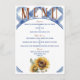 En robust och underbar bröllop-meny som hjälper dina gäster att njuta av din kommande bröllopsmottagning med blå och vit bakgrund, solblommor och enkel text att uppdatera med dina egna menyalternativ.