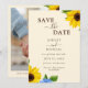 Låt kärlek blomma med solrosttemat Spara datumkortet. Med varma, rustiska blommigtar och typografi av eleganten är det ett glatt sätt att tillkännage din bröllopsdag. Anpassa med namn, datum och plats. Ett vackert första intryck för ditt solrosininspirerade firande.