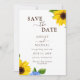 Låt kärlek blomma med solrosttemat Spara datumkortet. Med varma, rustiska blommigtar och typografi av eleganten är det ett glatt sätt att tillkännage din bröllopsdag. Anpassa med namn, datum och plats. Ett vackert första intryck för ditt solrosininspirerade firande.