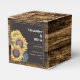 Anpassa en unik bröllopsförmånslåda för gäster med den här Rustic Solrosbröllopsförmånslådan. Med en favoritlåda får du en trio av vattenfärgade solrosblommor mot en rustik träbakgrund. Anpassa till namn i brudgummen och till bröllop-datumet. Ytterligare bröllop-förråd finns även med den här utformningen.