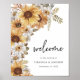 Rustic Solros Bröllop-tecken. Tillsätt ett solsken till bröllop med dessa vackra, handmålade solrosor, vita daisy och sage grönt och terracotta-färgad-löv med gult av . Perfekt för en romantisk, rustisk höst eller utomhussommarträdgårdsbröllop, den här fantastiska boho chic bröllop-välkomstskylten poster tonen för er speciella dag. Sök efter produkter i inbjudan till Rustic Watercolor Solros Wedding.