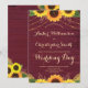Den här rustiska land-formgivningen har guld-strängen ljus och snöre med solblommor av gult och marsala-röda blommigtar av burgundisk marsala mot bakgrund av rödladuvirke av burgundy marsala. Anpassadet visas i blek guld i populära skript och serif-typografi. Du kan anpassa inbjudan till ditt eget bröllop genom att ändra texten i mallen.