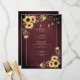 Rustic Solros Burgundy Wood Blommigt Bröllop Meny