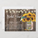 Rustic Solros Mason Burk och Hummingbird Barn Wood Inbjudningskort för möhippa.