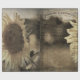 Stäng ett foto av en solrosa med en processaa digital åldras och en lagersida för vintagar, plus ett bin i det nedre hörnet av högerna. Och ett annat bin på solrossen i fotot.
