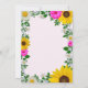 Rustik inbjudan till landsbyggsbröllop med pulserande solblommor, traditionella vita daisy och rosa blommor mot ljus rosa bakgrund med baby utandning och botaniska gröna accenter
