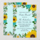 Rustic land Påsk inbjudan med pulserande solblommor, traditionella vita daisy och tealblommor mot en lätt akvatisk bakgrund med baby utandning och botaniska gröna accenter