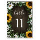 Rustic Solros Daisy Bröllop Bordsnummer-kort Bordsnummer