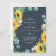 Den här inbjudan till bröllopet för avslappnaden av solrosolja är perfekt för ett landsbyggsbröllop. Utformningen av den bohemiska blommigten har gult solblommor, blommor i rosan och grönt eucalyptus greenery i vattenfärg med en elegant av modern bohos.