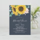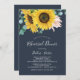 Denna inbjudan till rehearsalmiddagen för solrosokalyptus marinflotta är perfekt för en landsbyggsbröllop-repetition. Utformningen av den bohemiska blommigten har gult solblommor, blommor i rosan och grönt eucalyptus greenery i vattenfärg med en elegant av modern bohos.