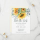 Det här sparar datumet för platta kort med vattenfärgade solblommor och eukalyptus. Skriptkalligrafi och modernt teckensnitt som används.