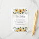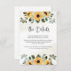 Dessa vackra och rustiska bröllop-informationskort för gäster har vattenfärgsbuketter av guldfärgat gula blommor och grönt botaniskt löv med boho avslappnad script typography, på vit bakgrund med varm neutralt vattenfärg stänk i färg.