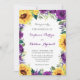 Rustic Solros Lila Blommigt Bröllop Inbjudningar