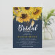 En elegant inbjudningskort för möhippan med trendig marin blå bakgrund, rustik sommarsolrosblomma och blommigt med faux-gult konetti. Den moderna mallen för möhippa är lätt att anpassa med hjälp av den tillhandahållna mallen och kan ändras till "Möhippa Brunch" eller "Aeftermiddag Tea". Matchningen av bröllop är i vår samling "Navy & Solros Elegance".