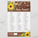 Det här möhippa-spelkortet är What's in you purse? Konstruktionen har solblommor med vattenfärg, ljus och trä. Anpassa kortets baksida med bridens namn. Matchande produkter är tillgängliga.