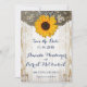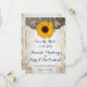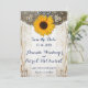 Rustic Solros och Snöre Spara datumet. Vackra, rustiska spaltspinnar och snöre över en våtöd bakgrund av träplank. En solrosa i gult kompletterar konstruktionen.