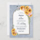 Inbjudan dina vänner och nära vänner till bröllop med den här blåa blommigten-inbjudan med vibrerande solblommor, delikat rosa ros och sprayning av eukalyptus grenar för att din glädje på din speciella dag.
