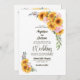 Inbjudan dina vänner och nära vänner till bröllop med denna roliga inbjudan med pulserande solblommor, ömtålig rosa ros och sprayning av eukalyptus grenar för att hjälpa till att din glädje på din speciella dag.