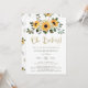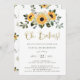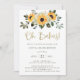 De här roliga duschbojorna eller babyduschinbjudningarna har söt solblommor i färggranna skuggor av gult och guld, med grönt löv på en vit bakgrund med faux guld avslappnad skript som säger "oh spädbarn!"