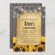Rustic Solros String Ljus Barn Wood Birthday Inbjudningar