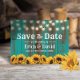 Rustic Solros & String Ljus Teal Barn Spara Bröllop-meddelanden.