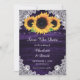 Elegant lila- och solroskort bröllop spara datum med solrosblommor på en rustisk träbakgrund, med vit blommigt snöre och ljus. Matchande objekt är tillgängliga.