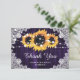 Rustic Solros Wood Snöre Lila Bröllop Tack Kort
