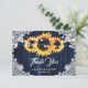 Rustic Solros Wood Snöre marinblå Bröllop Tack Kort