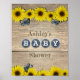 Rustiskt, vävt trä med gult solrosor och blå fjärilar, söt blått och vitt flaska-överdrag av typen "Baby". Och namn-mallen skapades åt dig. #zazzlemade #rustic #sunblommor #butterflies #bottlecaps #Landsliv