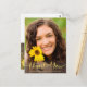 Skicka ett foto av studenten-vykortet till din familj och dina vänner med personligen Rustic blommigt för att tacka dem för deras gåvor. Den här designmallen innehåller ditt foto på framsidan med ett faux guld-textöverlägg som läser "Tack" med ditt namn och klass/år nedan för att anpassa. På baksidan av vykortet finns ett trä struktur för den bakgrund som vattenfärgen solblommor och faux guld glitter ger. Anpassa ditt tackmeddelande, namnteckning och returadress. Gratulerar på studenten! Designad av konstnären ©Susan Coffey.