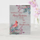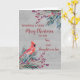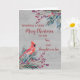 God jul för son och dotter i ett lagkort med vattenfärgad löv, en kardinal och trä mönster och en tankfull vers.
