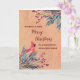 God jul för son och hans familjekort med rustik vattenfärg, grön och kardinal och vintage pappra mönster.