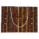 Warm geometric stripe pattern gift bag featuring tribal-inspired diamonds, zigzags, and textured vertical bands in earthy brown, terracotta, tan, beige, and charcoal tones. A cozy boho design ideal for southwestern décor lovers, rustic style fans, and anyone drawn to earthy, handcrafted aesthetics.