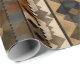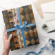 Warm geometric stripe pattern wrapping paper featuring tribal-inspired diamonds, zigzags, and textured vertical bands in earthy brown, terracotta, tan, beige, and charcoal tones. A cozy boho design ideal for southwestern décor lovers, rustic style fans, and anyone drawn to earthy, handcrafted aesthetics.
