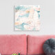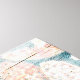 En tealblått träskikt på stranden med en stjärnfisk av mönster och en rostblått träskiktsformat.