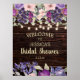 Bröllop Möhippa välkomstbanderoll/tecken med en rustik lada-design med strängen ljus och rosa och lila vattenfärgsfärg blommigt.