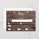 Rustik OSA kort med träeffektbakgrund. Vitt teckensnitt och tomma blanksteg som du vill fylla i gästens information. Inkluderar val av måltider.