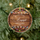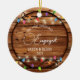 Fira den glatta helgdag med din familj med vår "First jul Engaged Rustic String Light Photo", runda keramiska prydnadsföremål. Den här designen har en elegant ram och jul-ljus med det sjudande manuset "Vår första julfest", med namn och år. På baksidan finns ett foto som du kan välja. Den här unika ornamenten kommer att ge dina Julafton dekorationer en elegant.