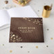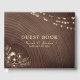 Elegant bröllop gäst bok med faux träbakgrund, glanssträng ljus och blommigt guld teckningar. Personlig med parets namn och datum - perfekt för välkomnande av gästerna i stil.