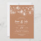 Prisvärda anpassningsbar-utskrivna bröllopsinbjudningar med en enkel använda för anpassning. Den här rustiska chicen är utformad med strängar av ljus och Mason burk på en dammig terra cotta-bakgrund. Anpassa inbjudan med information om bröllop eller anpassa texten till använda för alla händelser. Använda designen verktyg om du vill välja valfri bakgrund färg, lägga till foton och anpassa texten typsnitt och färger så att du får en unik design för bröllop.
